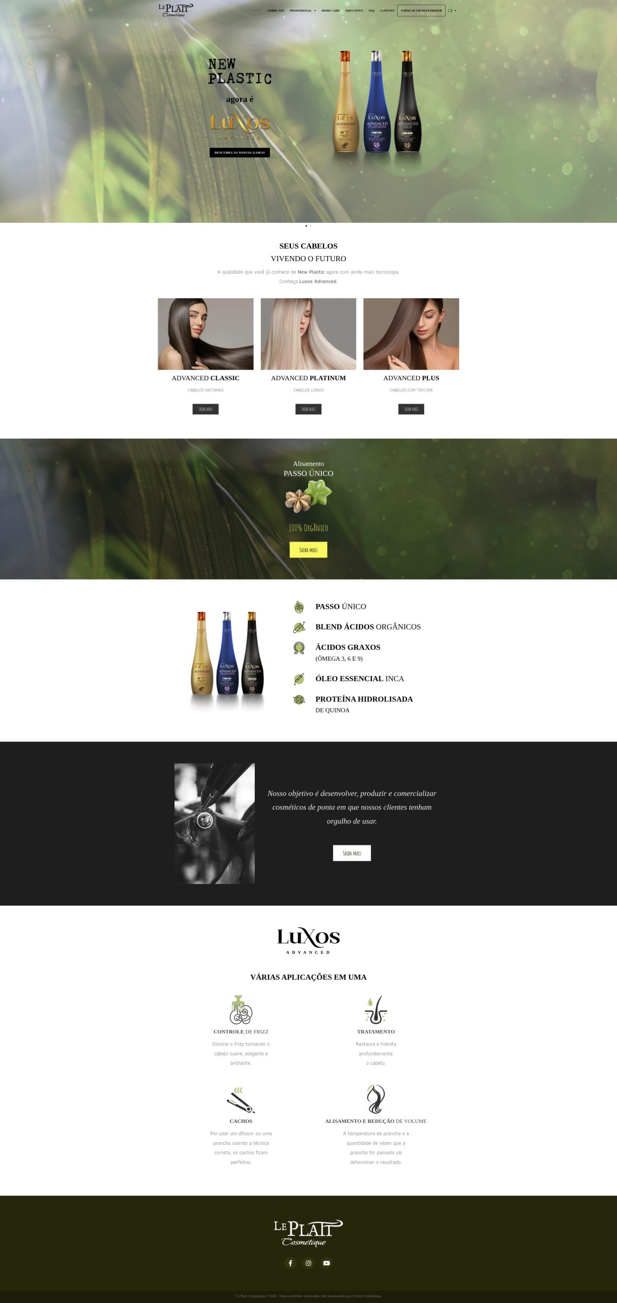Site da Le Platt Cosmétique com páginas exclusivas de produtos e linhas, área educativa e revenda.